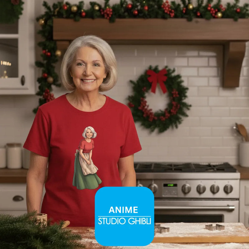 This is your own custom Ghibli-style illustration, created uniquely for you and printed on a premium anime character t-shirt.
