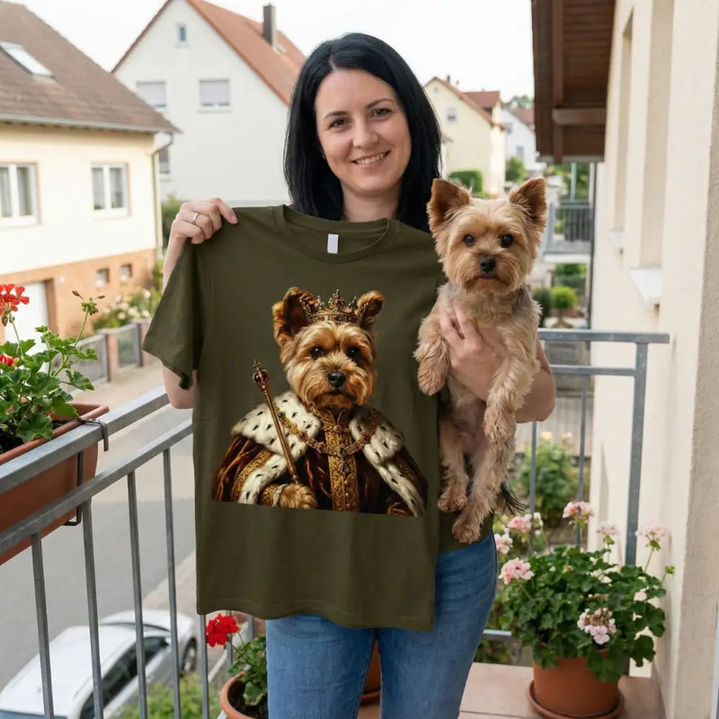 Transform your beloved dog, cat, bunny—or any furry (or feathery!) friend—into a regal, museum-worthy royal portrait, printed on a premium custom T-shirt.
